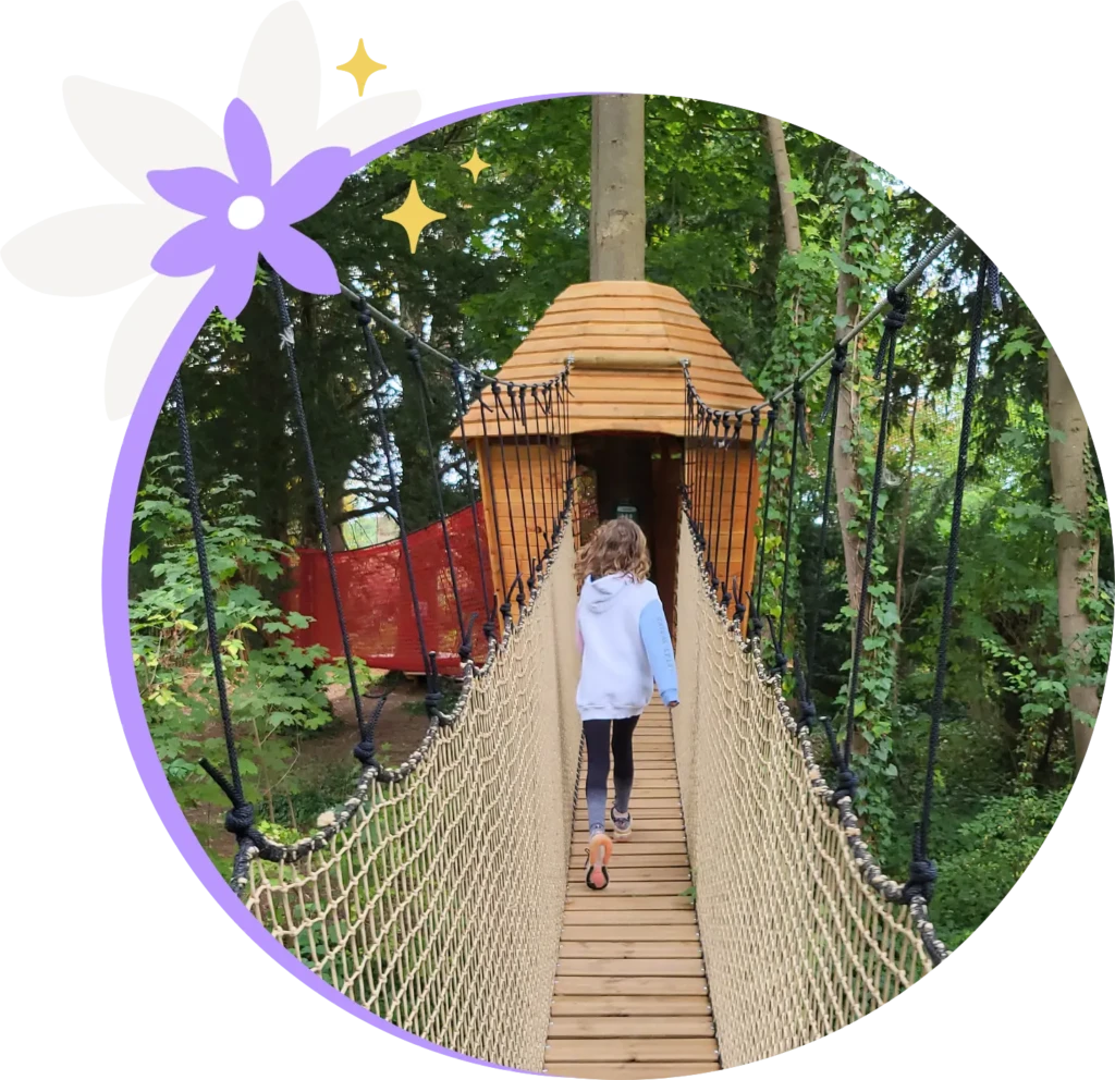 1 hectare de nature et de jeux suspendus, sans baudrier, pour une expérience accessible à tous ! Prêts pour l’aventure ?
